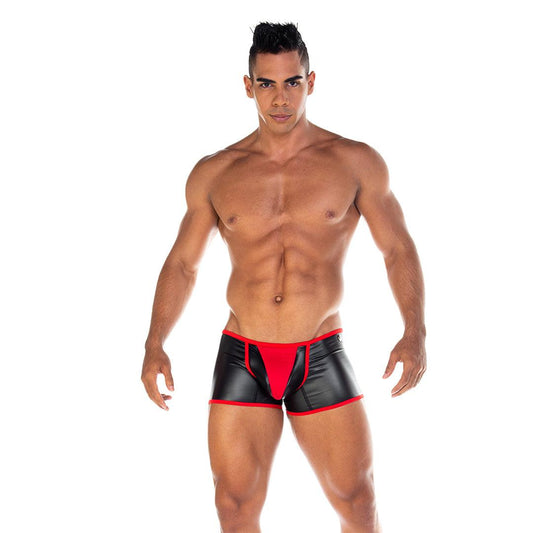 - Mesh and faux leather jocks